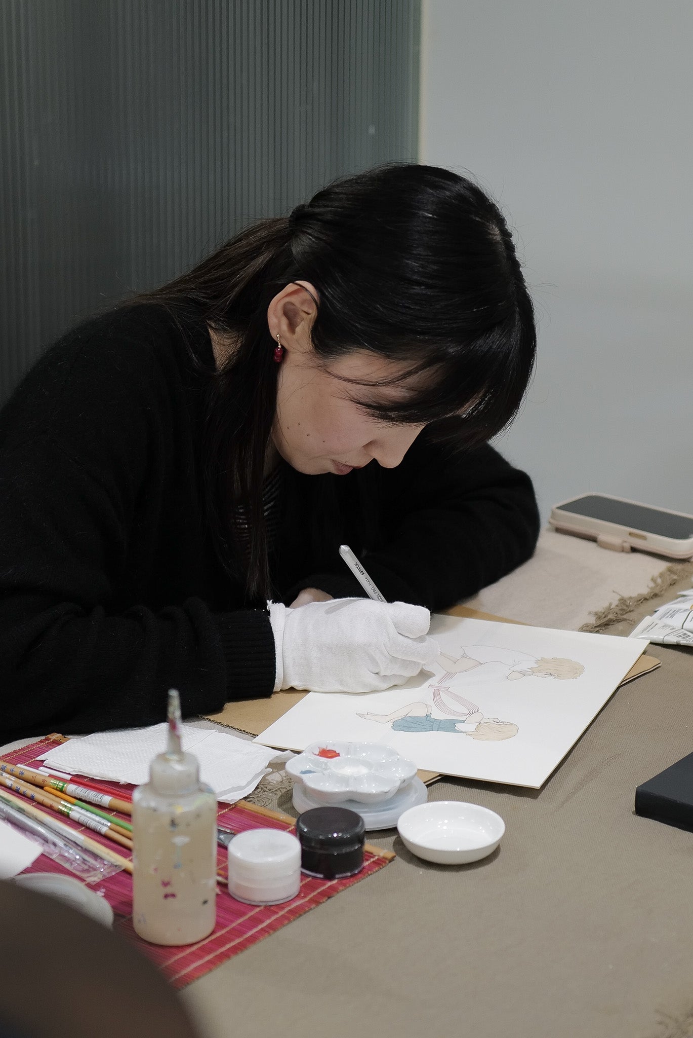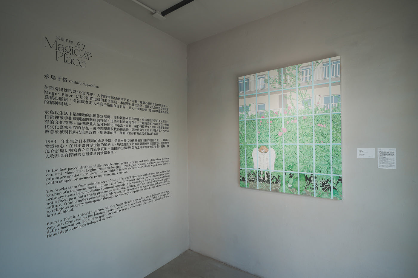 永島千裕的畫作以西方媒材重現日本畫的平面語彙、乾淨留白與細膩筆觸,使她的畫面既具現代感,又保有日本傳統美學的節奏與韻味。透過作品,她像在輕聲分享內在的記憶、信念與祈願,邀請觀眾進入她溫柔而豐富的精神世界。